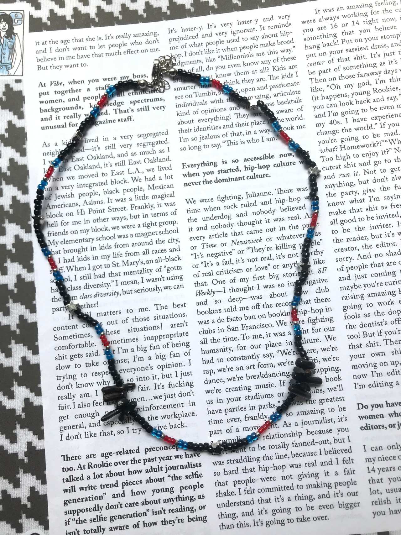ビーズ製品はとても繊細な作りとなっております。モチーフ部分やチェーン部分を強く引っ張る・ひねる等されますと、接続パーツの歪み・緩みや破損に繋がります。優しくお取り扱いいただけると幸いです。