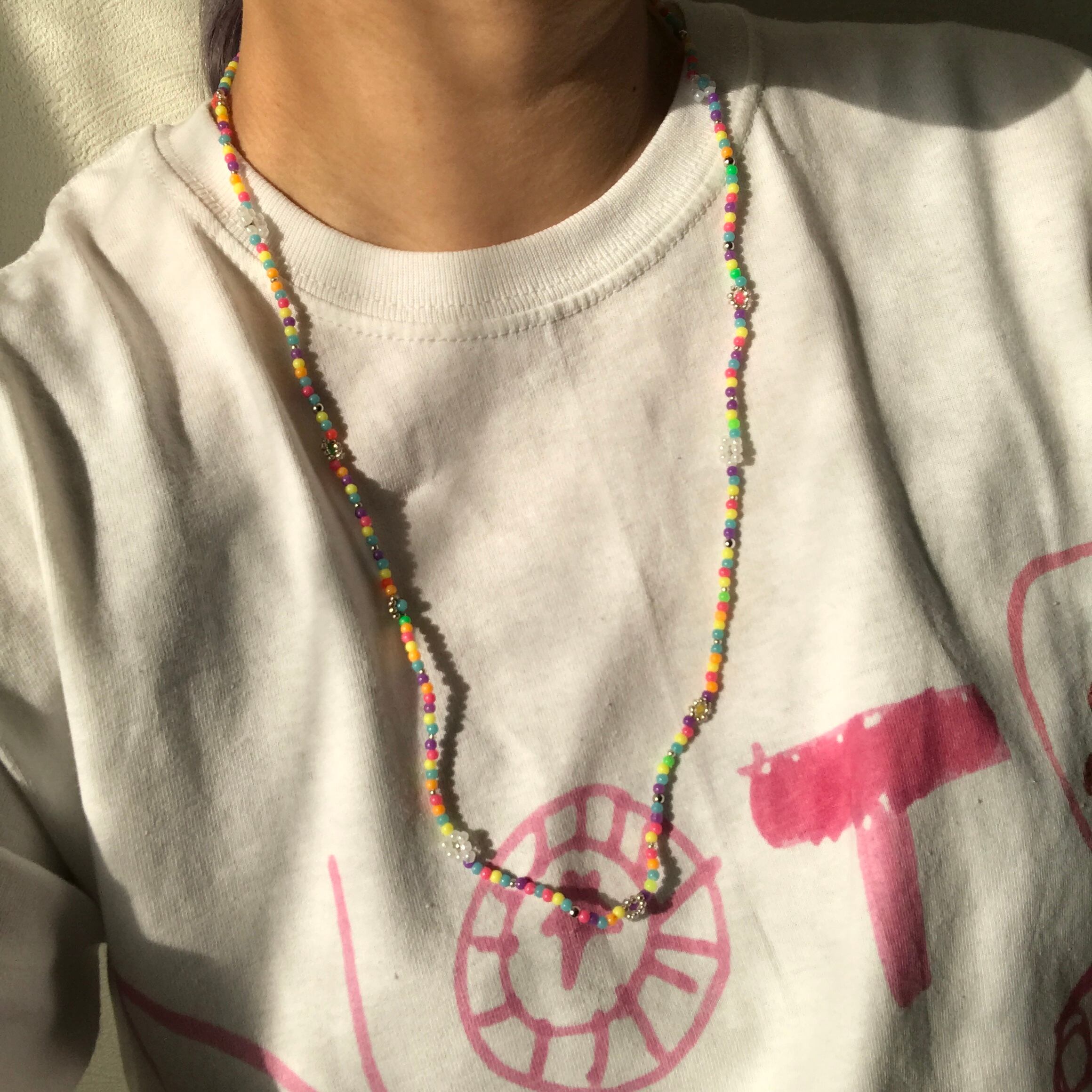 ビーズ製品はとても繊細な作りとなっております。モチーフ部分やチェーン部分を強く引っ張る・ひねる等されますと、接続パーツの歪み・緩みや破損に繋がります。優しくお取り扱いいただけると幸いです。