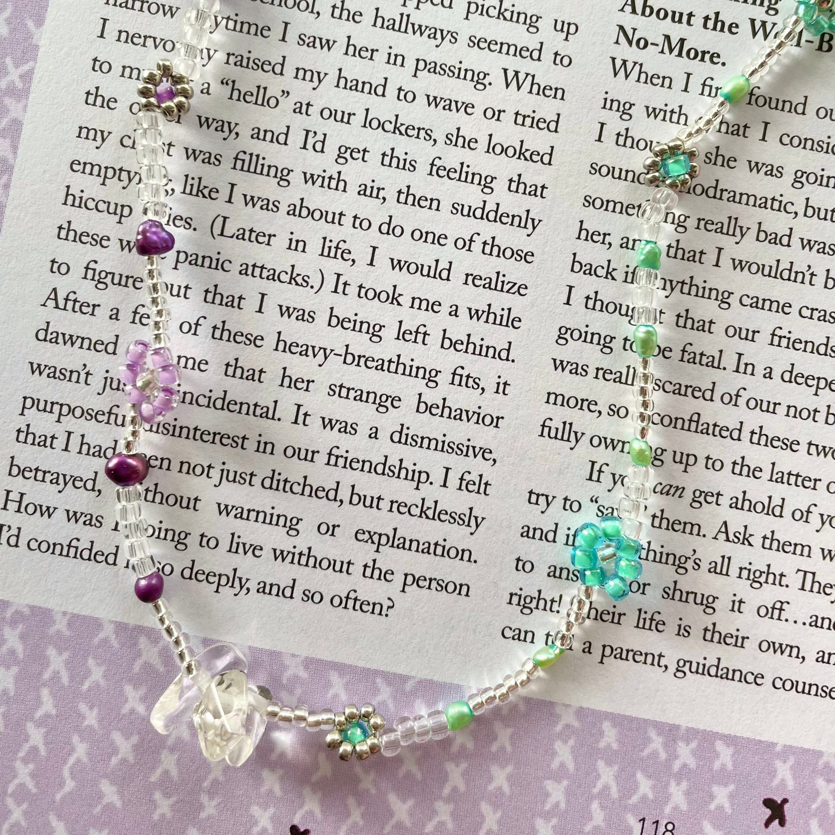 ビーズ製品はとても繊細な作りとなっております。モチーフ部分やチェーン部分を強く引っ張る・ひねる等されますと、接続パーツの歪み・緩みや破損に繋がります。優しくお取り扱いいただけると幸いです。