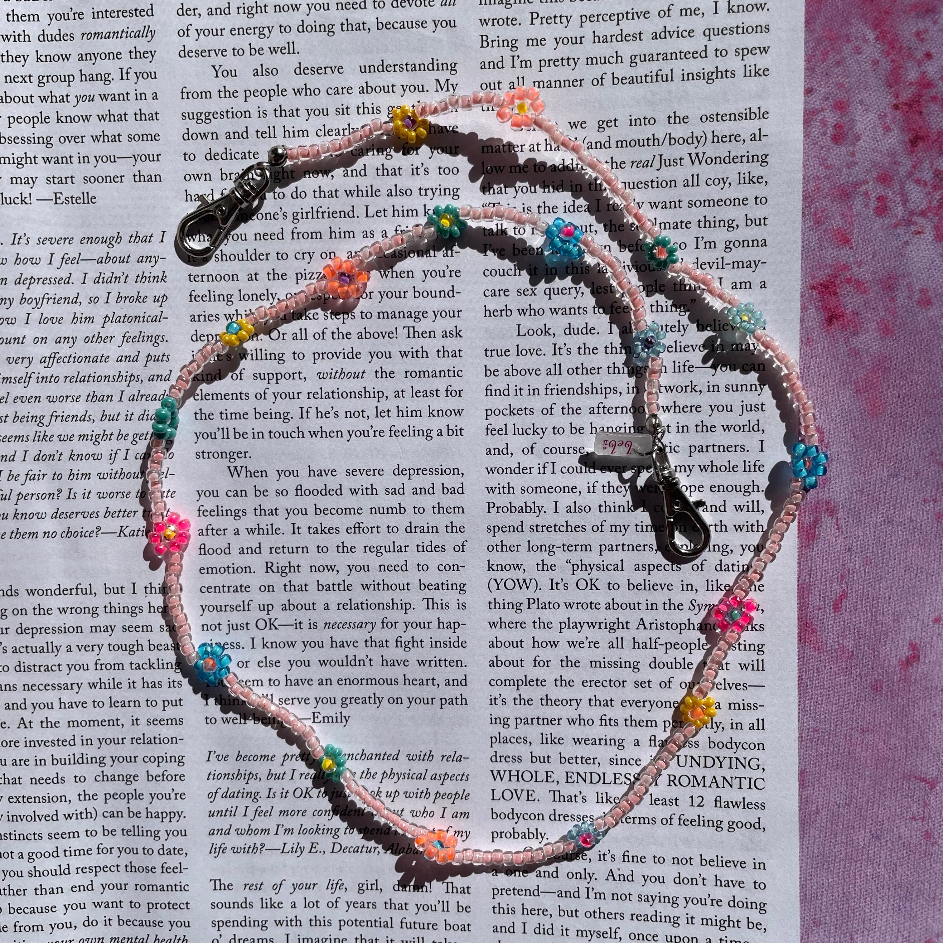 ビーズ製品はとても繊細な作りとなっております。モチーフ部分やチェーン部分を強く引っ張る・ひねる等されますと、接続パーツの歪み・緩みや破損に繋がります。優しくお取り扱いいただけると幸いです。