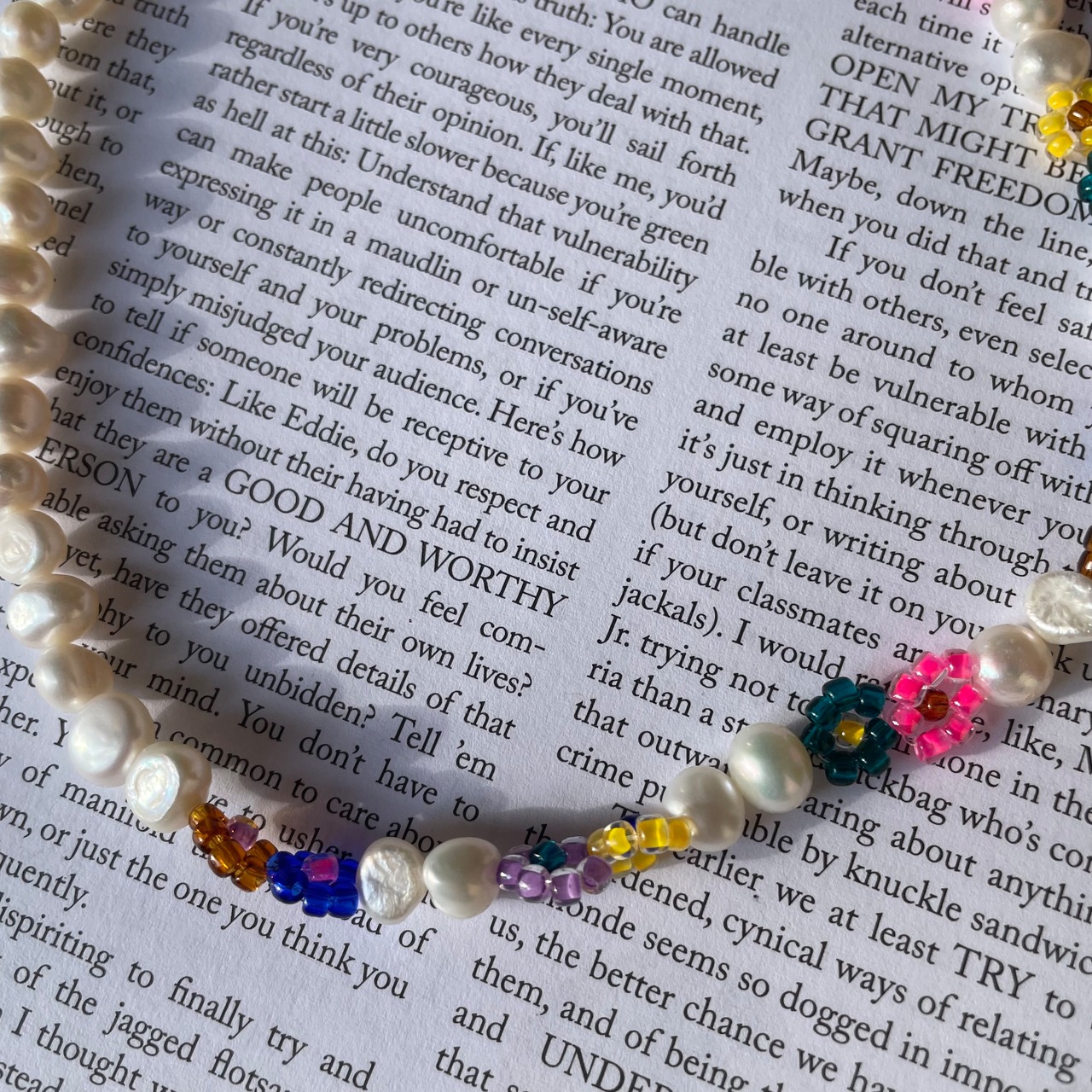 ビーズ製品はとても繊細な作りとなっております。モチーフ部分やチェーン部分を強く引っ張る・ひねる等されますと、接続パーツの歪み・緩みや破損に繋がります。優しくお取り扱いいただけると幸いです。